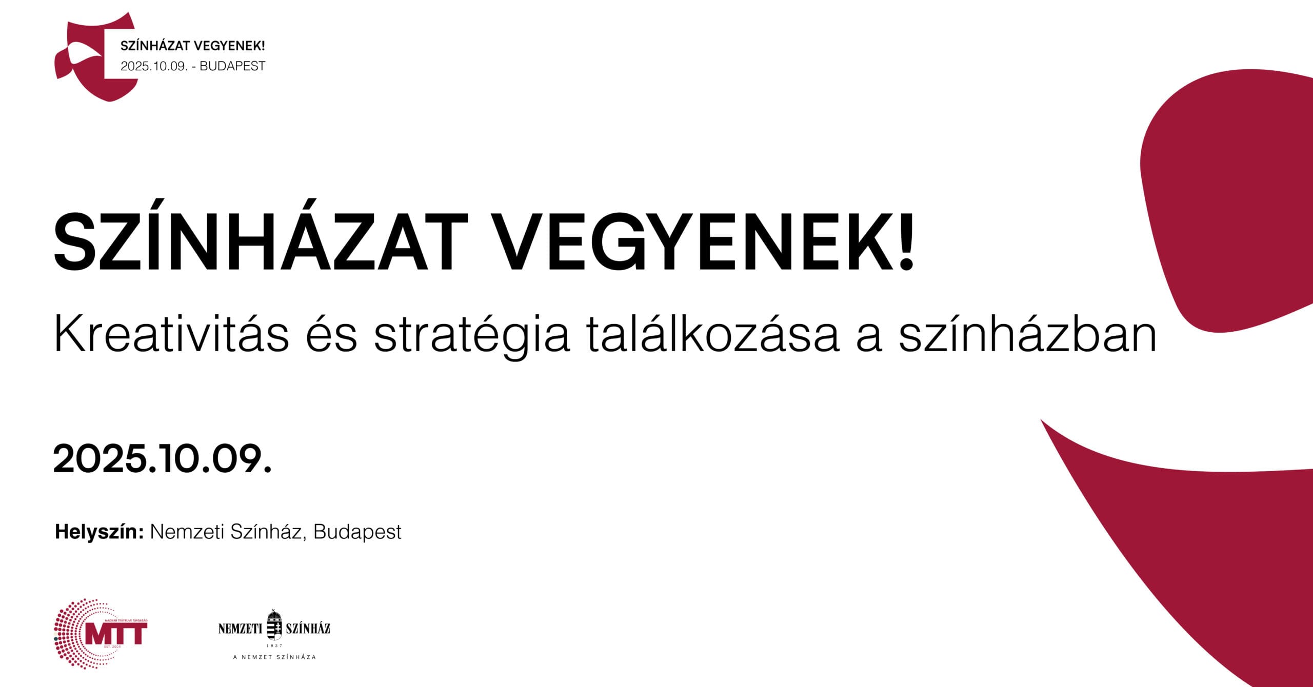 A díj célja, hogy elismerje a hazai és határon túli magyar nyelvű színházak kiemelkedő marketingteljesítményeit, innovatív kampányait és közönségfejlesztési megoldásait. Pályázati felhívás Színházat vegyenek! Marketing Díj 2025 A Magyar Teátrumi Társaság meghirdeti a Színházat vegyenek! Marketing Díjat, amelyet a 2025. október 9-én, a Nemzeti Színházban, az MTT Marketing Konferencia keretében adunk át. A díj célja, […]